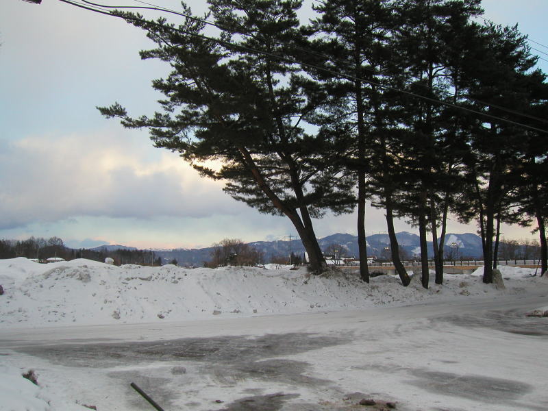 スキーの帰り。綺麗な夕暮れ。次の年のスキーの帰りも同じ色の空だった。