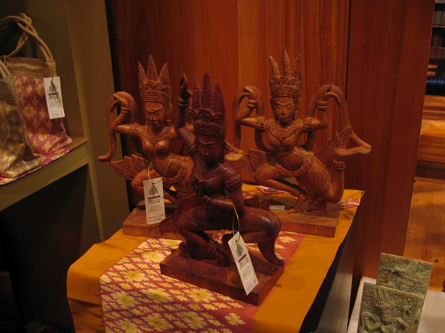 | ホウタイとは書物などを納める書庫でほとんどの場合木の作りとなっています。 4層に分かれた屋根は大きな棚が天上まで続いています。4つの側面は扉が開くようになっています。 棚は漆が塗られたものもあり、葉の模様には金箔がほどこされています。 経典などの書物が収められた書庫ですが、仏教の最も神聖な経典とされているTripatakaの複写(原本は燃えてしまった)も保管されています。ほとんどの場合ヤシの葉に書き記されています。言い伝えによれば、1834年、現在ラオスの首都ビェンチャンにあるワットシサケット寺院にてTripitakaの複写を納める際に複数の御坊さんで3日3晩それを背負い、寺院のまわりを練り歩き、納めたとされています。 |